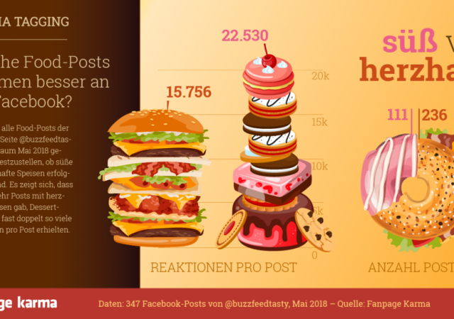 Mit dieser Frage beschäftigen wir uns in unserem aktuellen Karma-Tagging. Um herauszufinden, ob Posts mit herzhaften Speisen, wie Pizza, Steak und Currys, oder süßen Speisen, wie Torten, Eiscreme und Brownies, auf Facebook erfolgreicher sind, haben wir